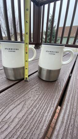 $25 each mug 14oz capacity Stainless steel and rubberized non skid bottom Wide base