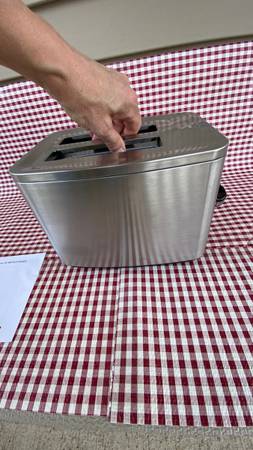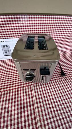Nice brushed stainless steel Cuisinart Toaster Has wide slots for bagels. My mom bought it but it is too big for her and her apartment. I am selling it for her. No box. The last picture shows some...
