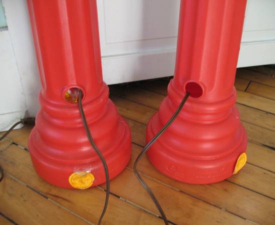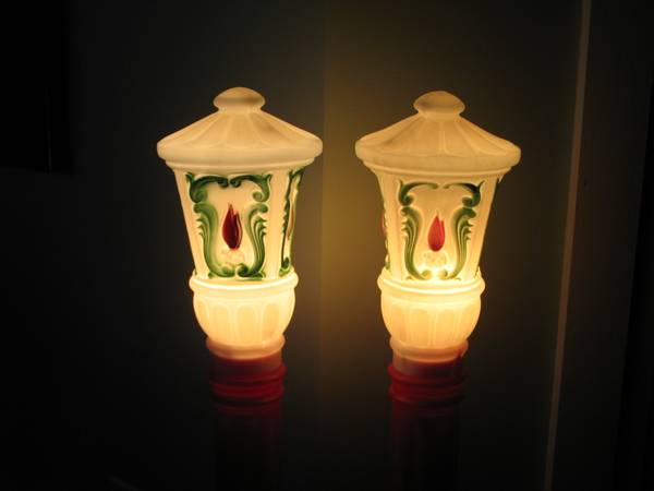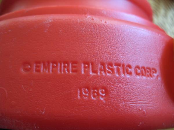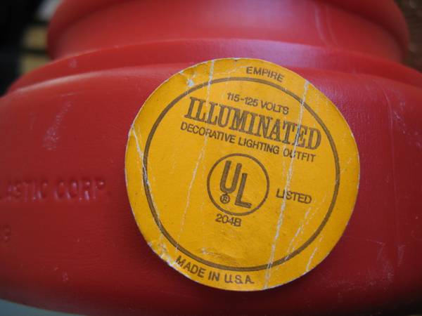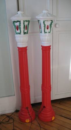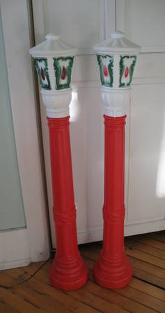 Rare pair of very charming blow mold Christmas decorations. Excellent condition, no breaks or cracks in the molds and the lamps are in perfect working order. They still have the original paper manufacture stickers on their bases. 39” tall and made by Empire Plastic Corp. USA / 1969.