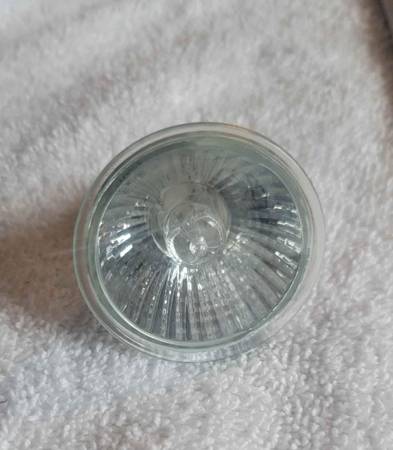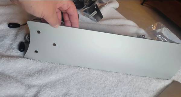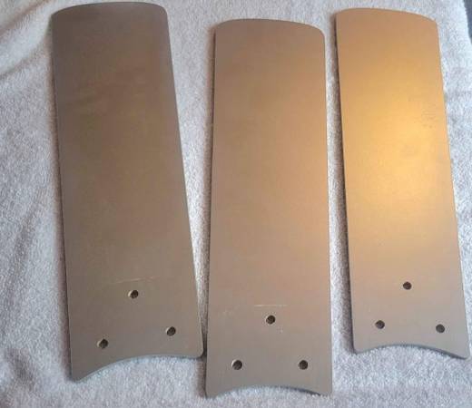 The fan was used for maybe 2 years, if that in a guest bedroom. It's in excellent condition, would be like new except 1 fan blade has some small scratches (See photos). They are not too noticeable. The fan is all a chrome metal except for the fan blades. It comes with the wiring and screws for the fan blades. It has 3 adjustable lights the move up and down, they use a flood light bulb that is 120v and 20w. Has two metal pull strings with black plastic ends. 1 string is for the lights and the other is for the fan. It has 3 fan blades that are wood with a chrome color finish on the visible side and black on the ceiling side. The blades are 17" by 5" and the lights are 4" long and 2.25" round at the widest part. The main part of the fan, the metal portion, is 14.5" tall and 24" long from fan blade end to end of the blade holder. The main part is about 11.5" round and the pull chains are 10" long.