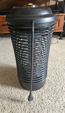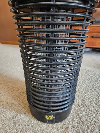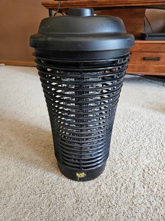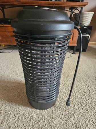Used and in great condition. It works perfectly and just has some very slight wear. It's all black with a metal hanger and it's electric plug-in. It has 5500 volts of power, powerful bug control. It covers up to 1 acre, so great for small to large yards. It's about 17.5" tall and 9.5" round. It also hasa durable plastic housing.