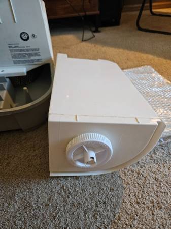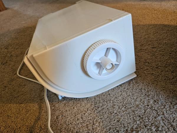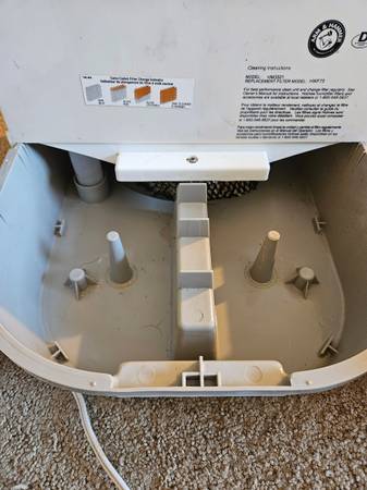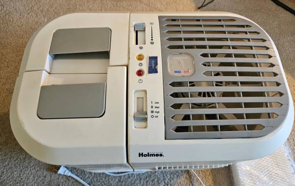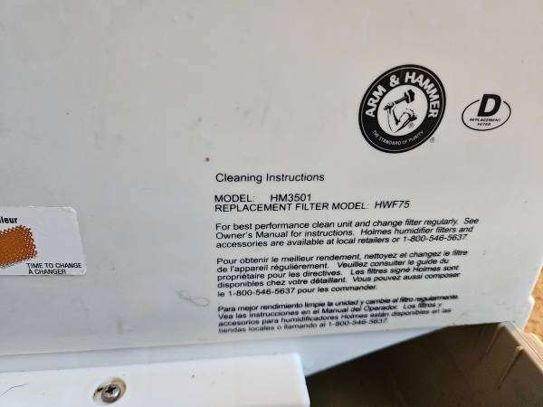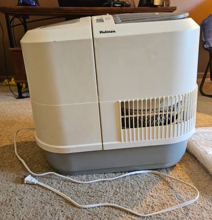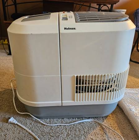 Used and in great condition, works great. The machine has some wear and scuff marks but works great and comes with a new filter. The Holmes 3500 humidifier is a model of a cool mist evaporative humidifier that uses a wick filter to add moisture to the air. It is designed to humidify a home and is known for trapping minerals from hard water to prevent "white dust" and for its use in allergy and cold relief. Key replacement parts, such as the wick filter, are widely available online. It has 4 moisture control settings: low, medium, high and off. It also has a filter check display. It's an electric plug-in. It's 19" tall, 20" long 12.5" wide.