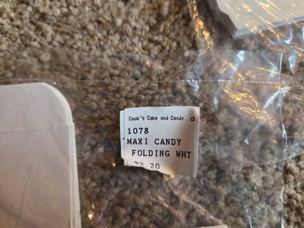 Set of 2 Cooks white maxi candy folding boxes. Each set is a 5 count. These are $1 per set, or both for $2.