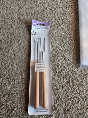 1 set of Wilton candy dipping tools, professional quality. They are metal with wood handles. They are $5.