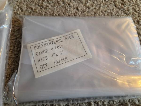 1 set of clear polyethylene bags, 100 count. Gadgets 0.0015 and they are 4x6". They are $2.