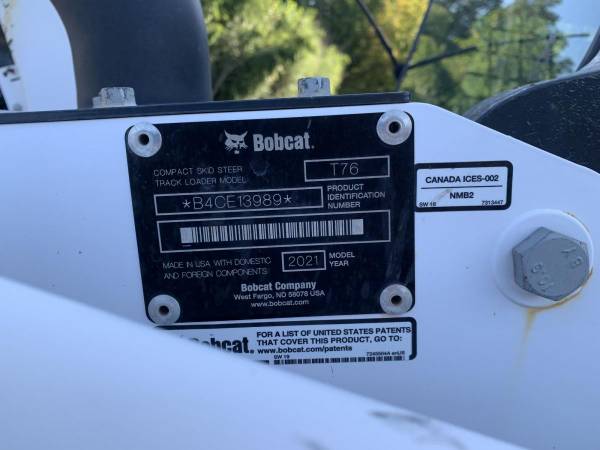 2021 Bobcat T76 with Only 211 Hours!!! This Fully Loaded Enclosed Cab with Heat and Air Conditioning. She's Powered by a Non-DEF 74HP Bobcat Turbo Engine with 2 Speed Travel. Other Features Include Deluxe Instrumentation Panel with Keyless Starting, Selectable Joystick Pilot Controls, Backup Camera, Power Bob-Tach, 7 Pin Attachment Control, Suspension Seat, Noise Suppression Package, and Auxiliary Hydraulics. Super Clean Unit in Practically New Condition for Only $59,950 or $1215 per month.(s/n B4CE13989)*** Bobcat wants $88,000 for this machine brand new. Save 30,000 for only 211 hours on the clock.!"