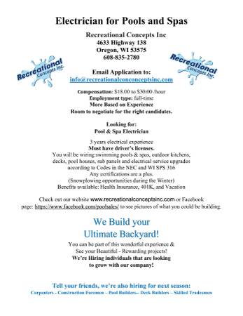 job title:Electrician for Pools & Spas ~ Concrete Finisher