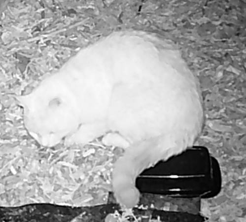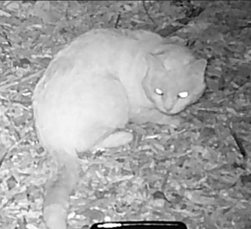 Anybody lose a white cat. she/he has started showing up at night where I feed the possums. I have not seen it but it shows up on my game cam. south of the town of cottage grove