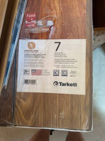 Approx 88 square feet of Tarkett flooring left over from project. Nice for entryway, closet, small kitchen etc. We’ll over $100.00 at Menards.