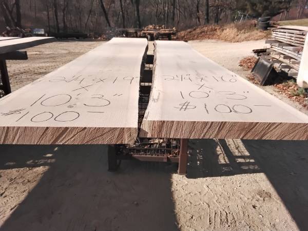 Fresh cut not dried live edge Black Oak is the 8'6" material, Red Oak is the 10'3" material, take all 4 pieces of the red Oak for 300