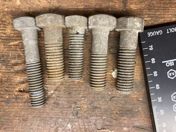Half bucket full of galvanized bolts and square nuts. Bolts are a mix of square and hex head, various lengths (mostly 1 1/2" - 2 1/4), and sizes (mostly 7/16 x 14 and 1/2 x 13). The whole lot for...