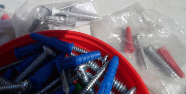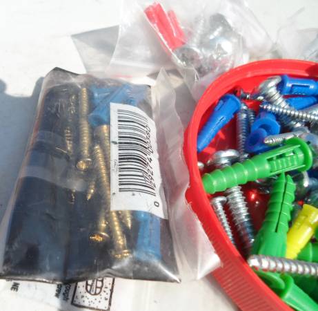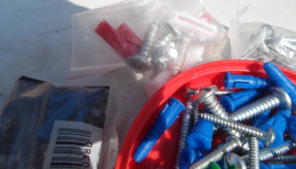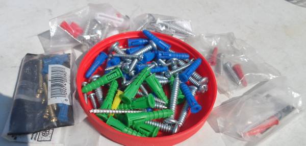 WALL ANCHORS: A number of plastic wall anchors of different sizes with metal screws. (more added since photo taken).