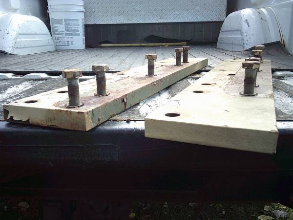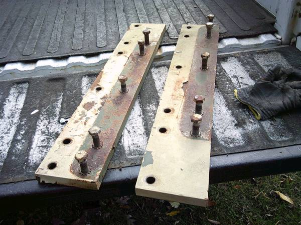 2 pieces of heavy steel 15/16" thick 5.5" x 31.5" they came off a military 5 ton semi