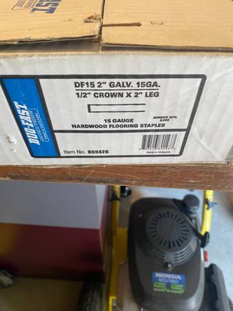 2"x 1/2" Galvanized crown flooring staples. 5000 per box. new. I have 7 boxes left. Give me a call. $25 per box.