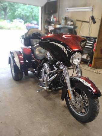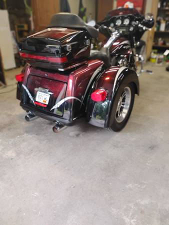 SHARP FRESHLY CUSTOM HEAVY METAL FLAKE FADE TO BLACK WITH AIRBRUSHED GRAPHICS WHOLESALE PRICED 2010 HARLEY FACTORY TRI GLIDE .ONLY 23,820 MILES 103 cu in motor 6 speed trans lots of custom aftermarket parts mirrors -chopped tinted windshield -custom windshield trim- new tires with 200 miles on them- fresh 3 hole fluid change all Lucas has cruise and reverse freshly rebuilt reverse motor- chassis looks like new. similar stock paint etc bikes selling from $18,000 up. VERY SHARP BIKE IN EXCEPTIONAL CONDITION PICS DO NOT DO IT JUSTICE runs drives great clean title in hand asking $15,500.00 o b o located in Beloit Wisconsin NO HOLDS CALL OR TEXT I DO NOT RESPOND TO EMAILS SIX 0 EIGHT 322 FIVE 1 FIVE 8