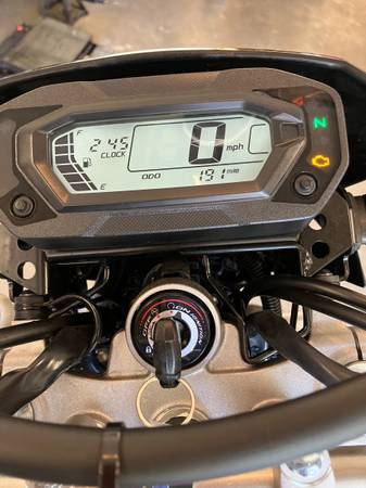 2023 KLX S(short) dual sport. 233 cc/4 stroke/ 6 speeds. Fuel injection, electric start, disc brakes. Top speed listed as 70 mph. I bought brand new this March. Was an unsold/uncrated 2023 model. Functions in EVERY WAY as a BRAND NEW KLX 230 would. Rear rack installed. Yellow stripe is tape—easily removed. Grab strap comes with. Warranty until 3/15/26. 2 keys, battery maintainer, owner booklet.
