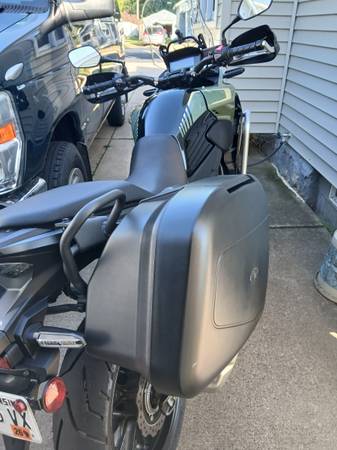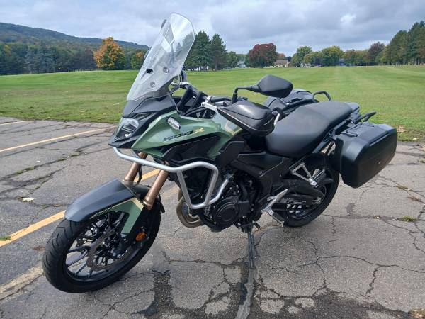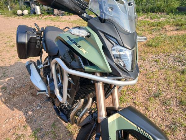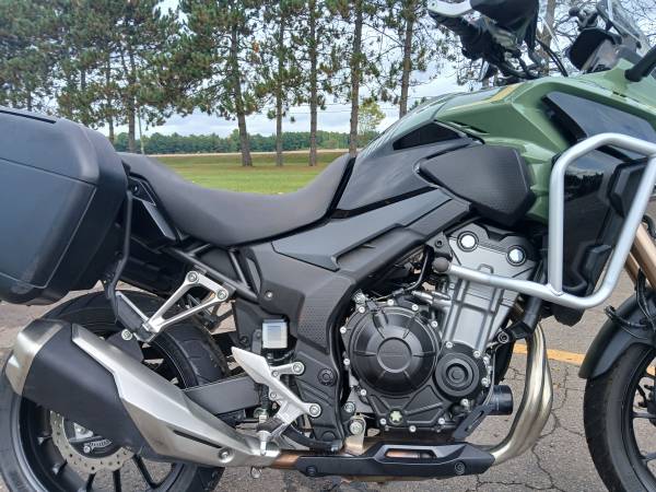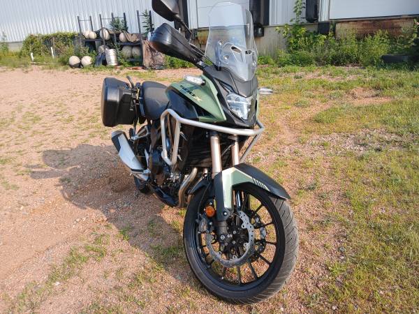 Honda factory side cases, Honda "crash" bars, Barkbuster Storm hand protection, 12v Honda power outlet, brand new, expensive tires and more...