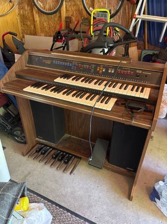 Lowrey electric organ works great can play all sorts of different ways Great for young person to learn piano and other organ type music Comes with bench seat also not pictured