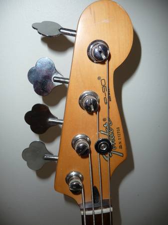 For Sale, Made in The U.S.A. Fender Vintage JP-90 bass. Made in the early 1990's. Totally up-graded. New Gotoh high mass bridge, new Seymour Duncan pick-ups. 1-P-bass pick-up and 1 Jazz bass pick-up. 3 way selector switch.Schaller tuners,new pick-guard,new up-graded pots and wiring, new knurled knobs. $250 in set-up and fret work, one of the nicest playing necks I have played, and I have owned over 45 fender basses throughout over 50 years of bass playing. Heavy duty Road Runner hard case. Great neck ,lightweight, modern style.$750 with the hard case $675 without the case . All original parts come with it. Just had a Tusq graphite nut installed.