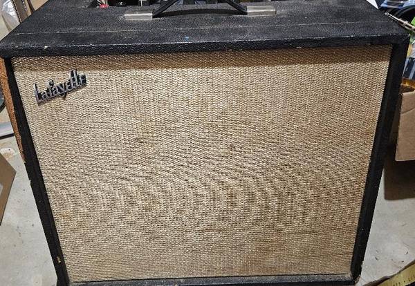 Vintage 1960’s Lafayette 1x12" 4-input Combo Amp with Tremolo Used $350 Tube Rectifier (6CA4) Powered Tube Tremolo (12AX7) Tube Preamp (12AX7) Tube Power Amp (6973) Around 20 Watts 12" Hellatone 60...
