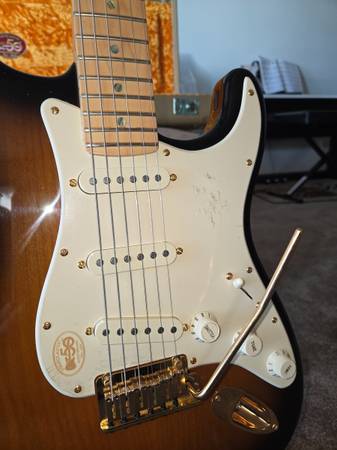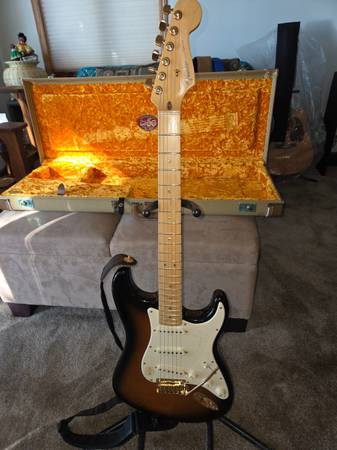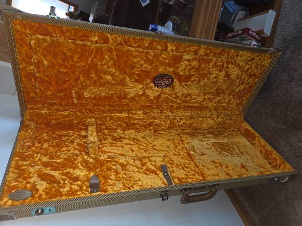 Made in America. I bought this brand new in 2004 and did not play it. Pick guard still has blister wrap and is unmarred. I have the receipt. Beautiful case. Accessorized in gold.