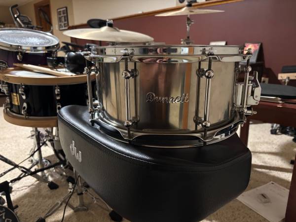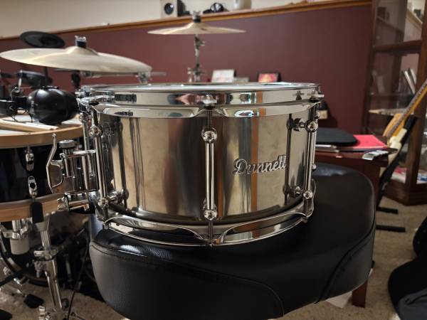 6.5”x13” Dunnett Aluminum snare drum. Excellent condition.