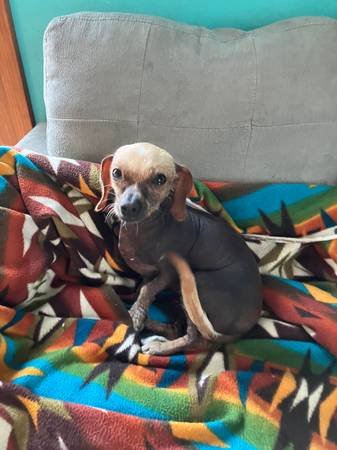 I have 2 younger female hairless dogs looking for a new home. They are probably a year now. My dad died and I need a few less responsibilities at the moment. These 2 are being picked on by my other dogs and would prefer a quieter home. Used to kids and cats. They will have to use puppy pads this winter but will still go out for a minute or two. I do have their mom here. Dad was a mini dachshund. These are lap dogs that love to snuggle extra but they do have an outgoing personality. Dispite having no hair they are truly mini heaters. Please text. They are not free but I am reasonable on price