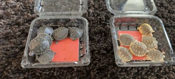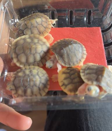 CHARCOAL Red Ear Slider turtle & Caramel Pink Red Ear Slider turtle They are 1 month old looking for great homes 🏠 rehoming fee is $200 each the price is firm $90 each