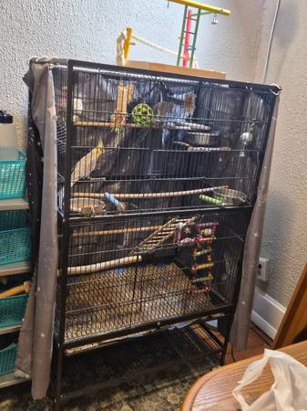 If someone adopts both, I have a large cage that can go with them. If one bird is adopted first, I’ll hold onto the cage until both have found homes.