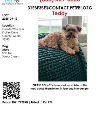 Breed/Appearance: Small fluffy tan dog with darker face, distinct underbite, very friendly but may be scared.