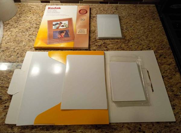 New/Never Used Kodak Photo Paper in a 50 sheet package and the other 50 sheet pkg. had some used. Also, 2 pkgs. of the smaller size. One New/Never Used and the other one was open (took out of the pack on the picture), but it appears to be either a full pkg. or close to it.