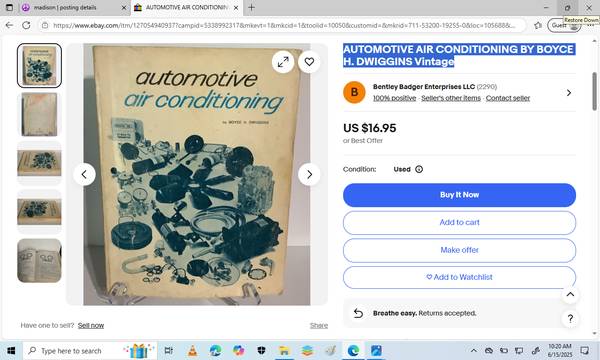AUTOMOTIVE AIR CONDITIONING by BOYCE H. DWIGGINS. If ad is up it's available. Reply with phone number for call back.