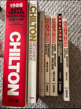 Selling 7 Chilton’s manuals. See pictures for condition and what topics. All in great shape. $10 each or $50 for the 7 I come through the Madison and surrounding area often so delivery is possible.