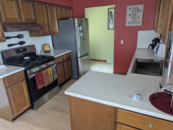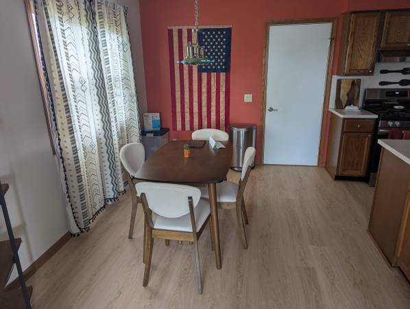 Easy access to highway and bus stop. Safe, quiet, friendly neighborhood. Downtown, grocery store, and gas station all nearby. Stove/oven, air fryer, electric kettle, dishwasher, large sink, washer, dryer, furnished common spaces. (can furnish bedroom if requested)