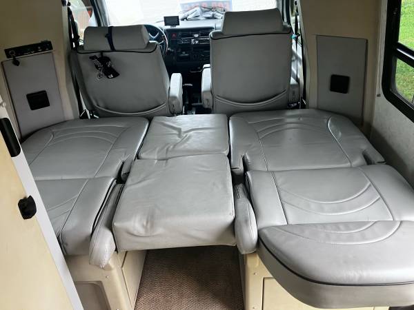 Rear bench seats with table converts to double bed. Front passenger seats converts to lg twin.