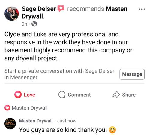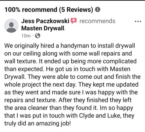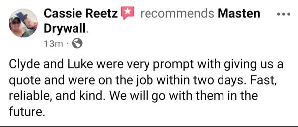 Hello, We would love to assist in your drywall projects. No project to small. We are always available and we appreciate your business.