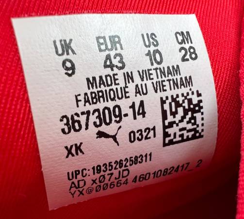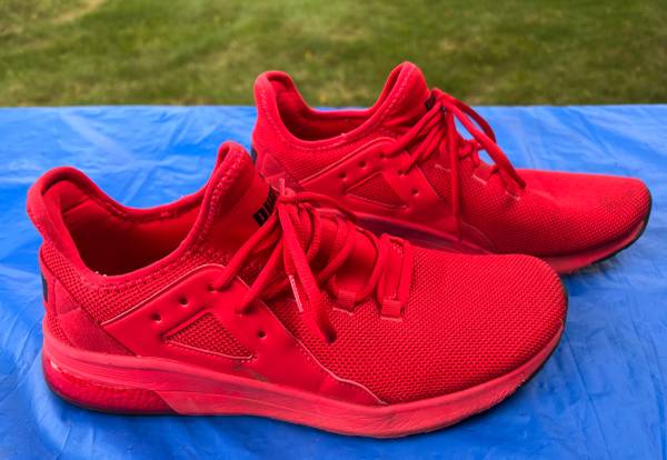Puma running shoes size 10D. Podiatrist says I have to go one size larger with all my shoe apparel.Only wore to 2 or 3 Badger games.
