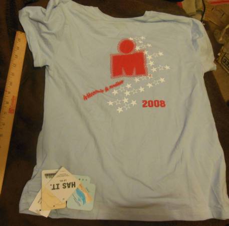 -IronMan 2008 T-Shirt cap sleeves dri-balance women size Med. Sky Blue. NR $26, Sell $5.