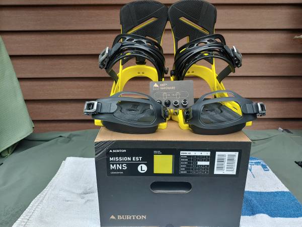 Bindings: Pro-grade workhorse performance with plenty of cushioning and the EST design for Channel mount boards. Like new. Used only 4 times! Color Yellow/Black. Size Large