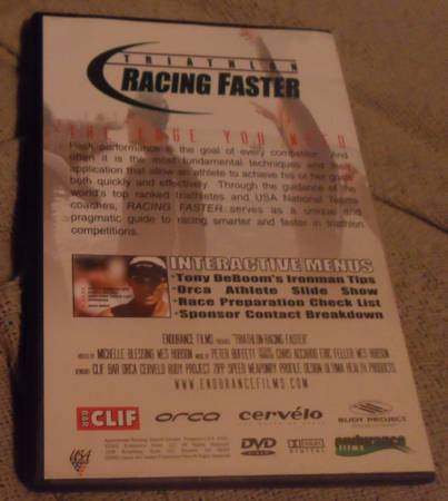 TRIATHLON RACING FASTER: A DVD by Endurance films serving as unique and pragmatic guide to racing smarter and faster in triathlon competitions. The edge you need to preform at your best.