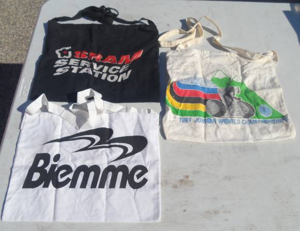 MUSETTE BAGS: Made to hand up food and supplies to cyclists. Cloth bags have many uses besides as intended and are reusable over and over. Size 12x12 inch with a 42" carry strap. Have the following: