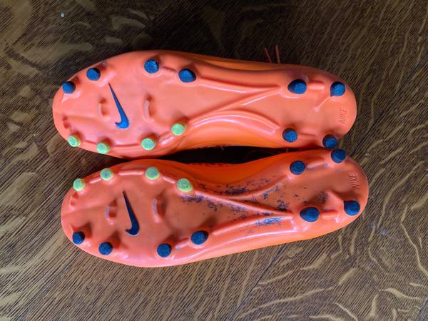 Lightly used Nike Magista cleats size 9.5 (Euro 43); bright orange/yellow/blue. Porch pickup $15 obo