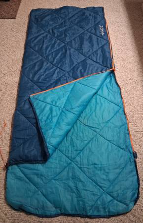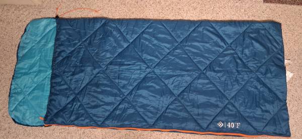 This is an Outdoor Products 40F Rectangle Sleeping Bag with Pillow Rest. This sleeping bag comes with a built-in pillow rest to keep your pillow in place. It also provides extra padding for a more comfortable rest.
