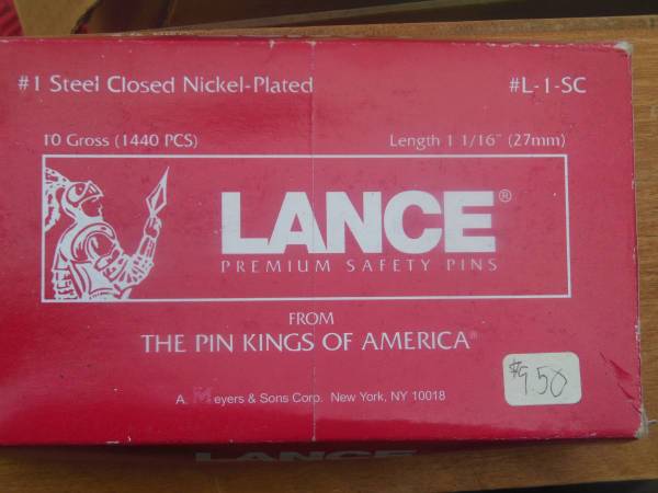 Will Sell a box of 10 gross (1440 pins) for $10.