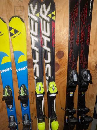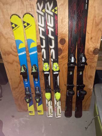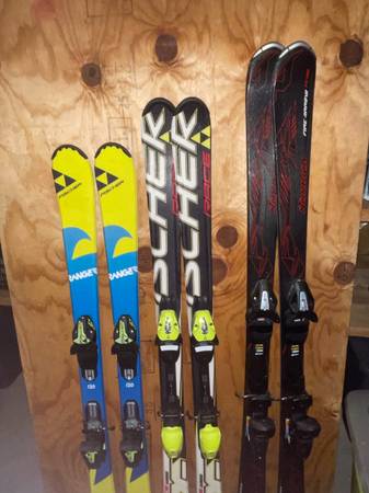 3 sets of youth skis -120 cm Fischer ranger skis (left pair) -130cm fischer race skis (middle pair) -140 cm Nordica fire arrow skis ( right pair) -Willing to negotiate any prices