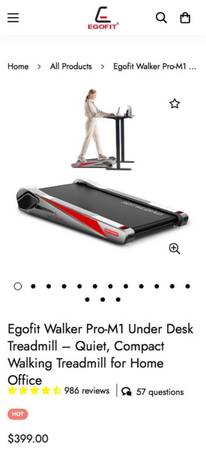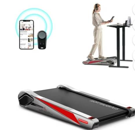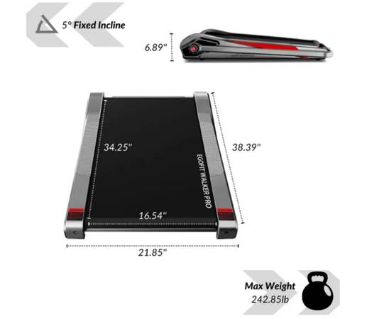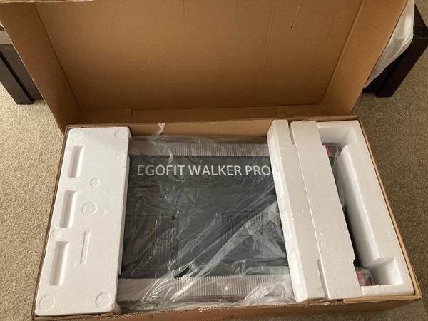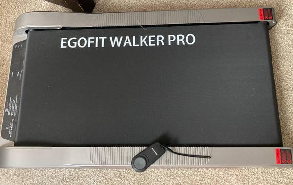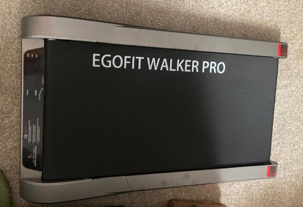 Egofit treadmill in great condition, in original box, retails for $400.00. "Egofit Walker Pro/Plus Smallest Under Desk Treadmill Walking Pad, Small & Compact Walking Treadmill with Fixed 5% Incline to Fit Desk Perfectly and Home & Office with APP & Remote Control"