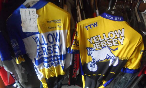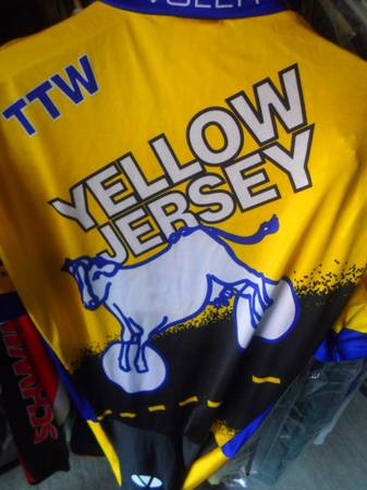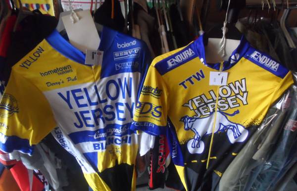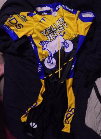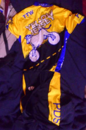 BIKE KITS: Vintage Two-Tyred Wheelmen/Yellow Jersey bike kits. Have two skin suits. New, never worn.
