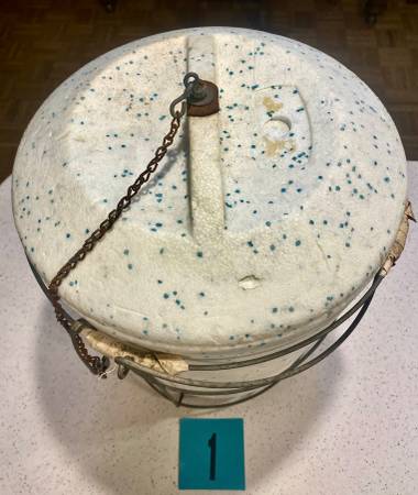 Wood base attached on bottom. Show signs Of Age & Being Used! It's is approx 15" Tall, 11'5 Round