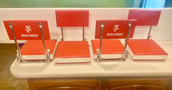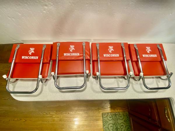 Wisconsin Badger Stadium Red & White Folding Seats with Hook. (4)