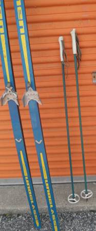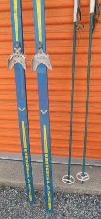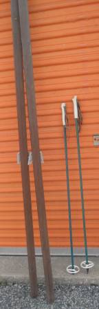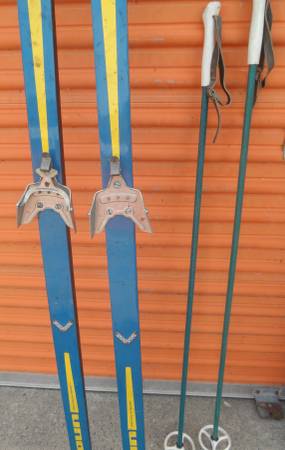 Overall skis in good shape. The one pole needs/could use a new metal tip. The one ski needs a new cage but you may wish to replace the older three pin bindings with the newer style bindings anyway.